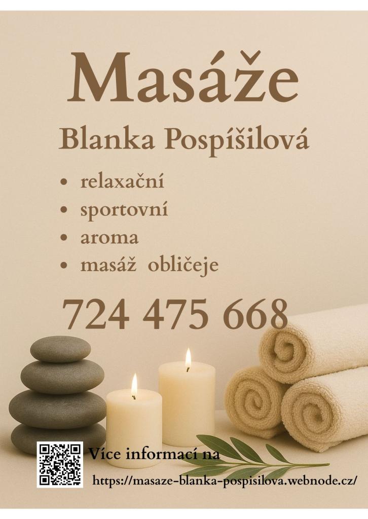 Tyto služby nabízí Blanka Pospíšilová (Nováková) a jedná se hlavně o masáže: